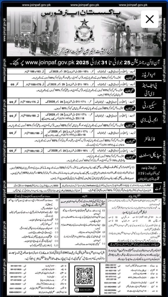 Join Pakistan Air Force 2025 as AeroTrade or Aerotech Personnel