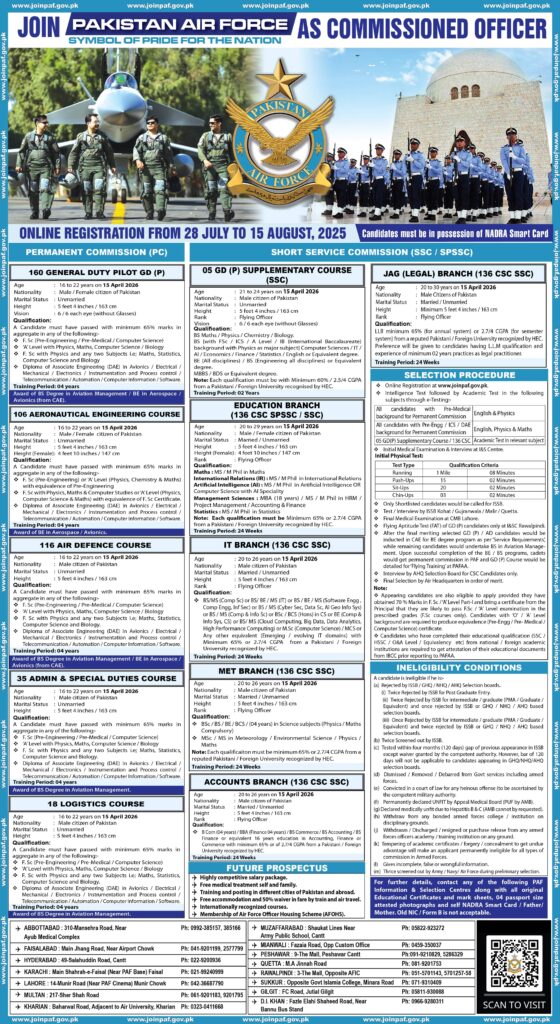 - Education: FSc / A-Level / DAE with minimum 60–65%